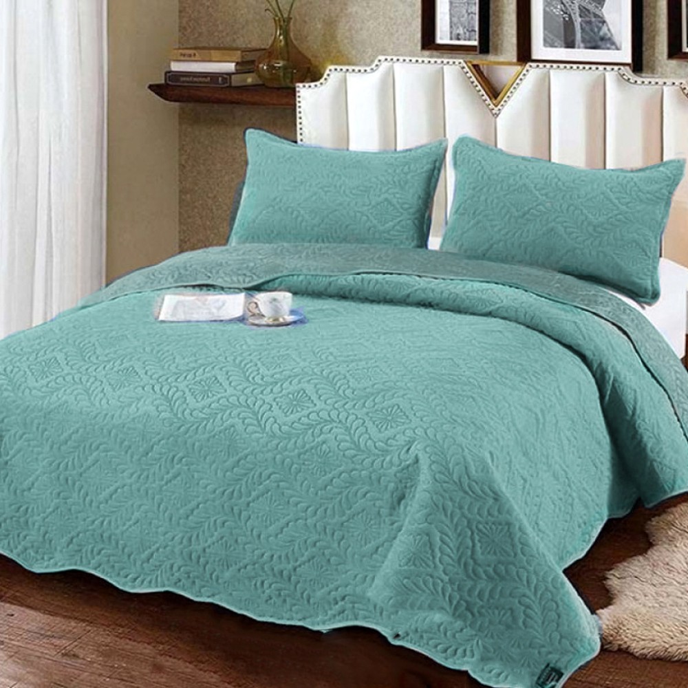 Cuvertura pat dublu, 3 piese, Catifea Matlasata, 230x250cm, Verde menta, Alti producatori, cod produs: SKK14