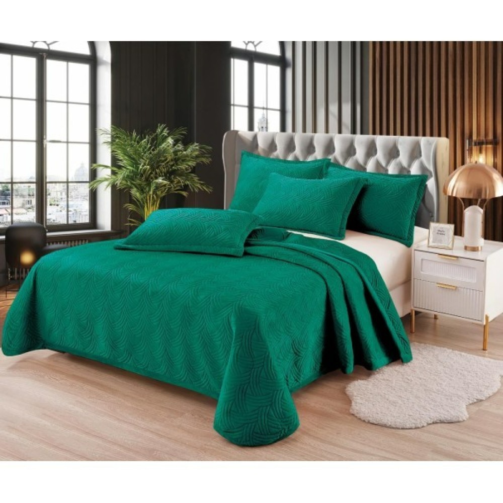 Cuvertura pat dublu, 3 piese, Catifea Matlasata, 230x250cm, Verde smarald, Alti producatori, cod produs: SKK16