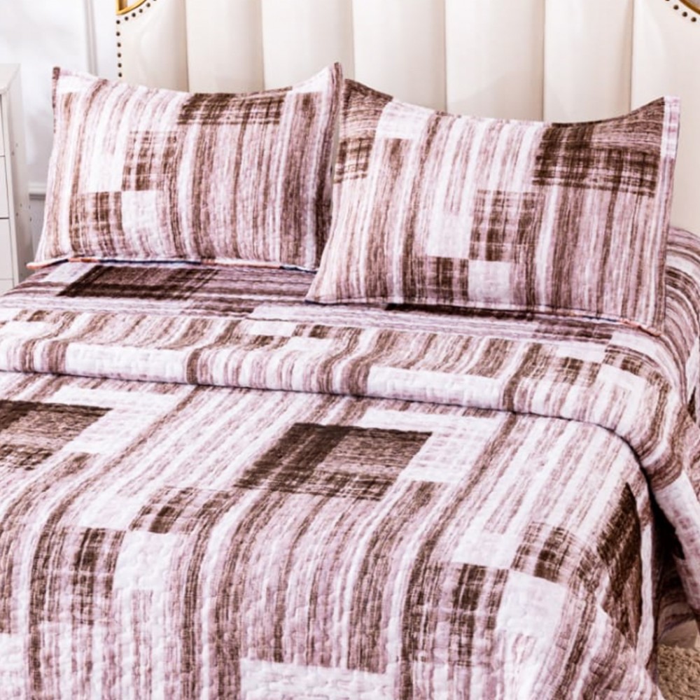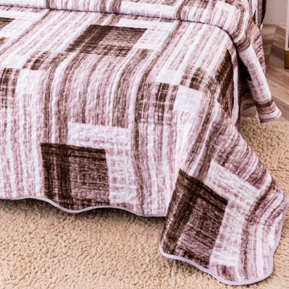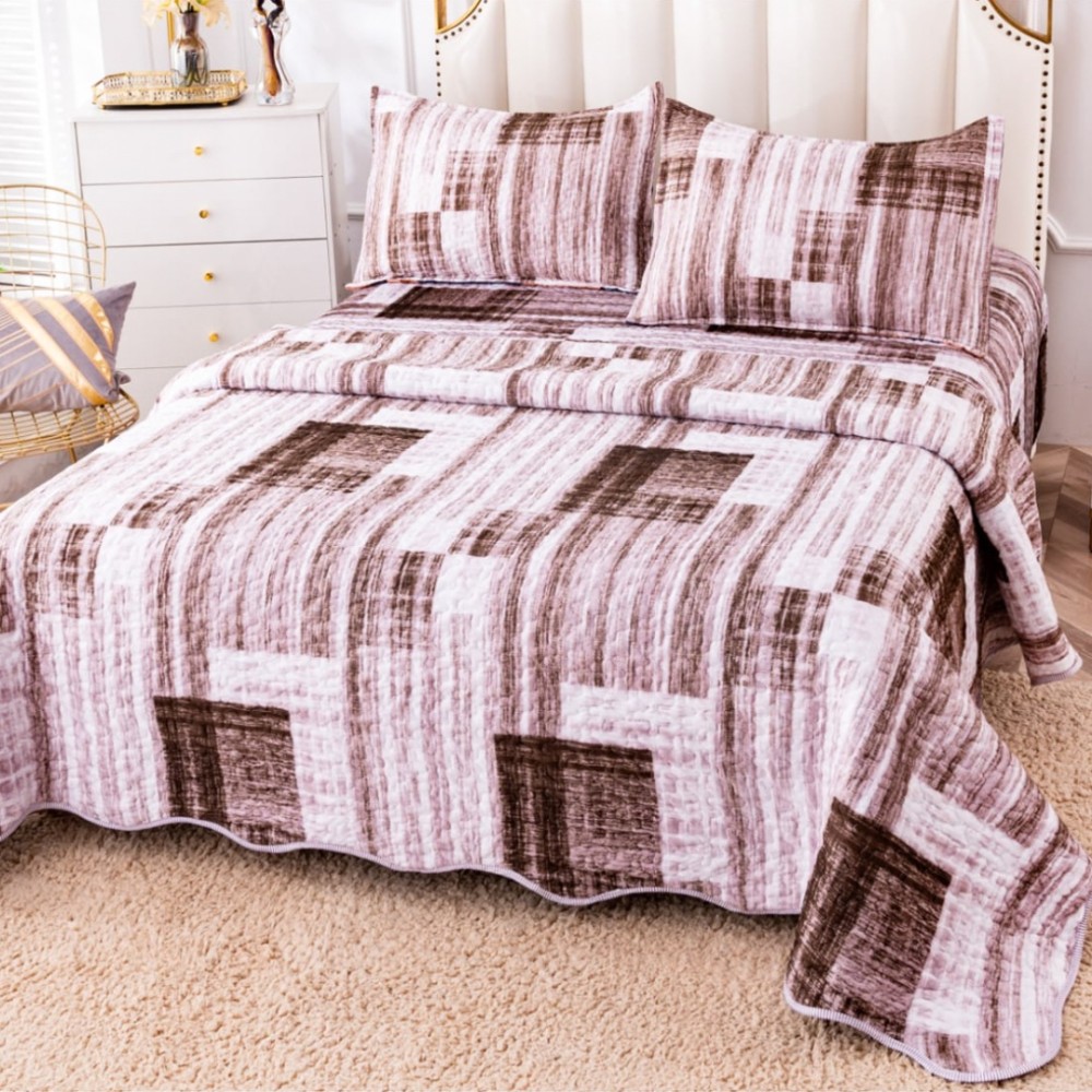 Cuvertură Pat Dublu, Catifea Matlasată, 230x250 cm, 2 fete de perna 60x80cm, Crem, Maro, Model Elegant, Casa Minunata, cod produs: INS-CVK01