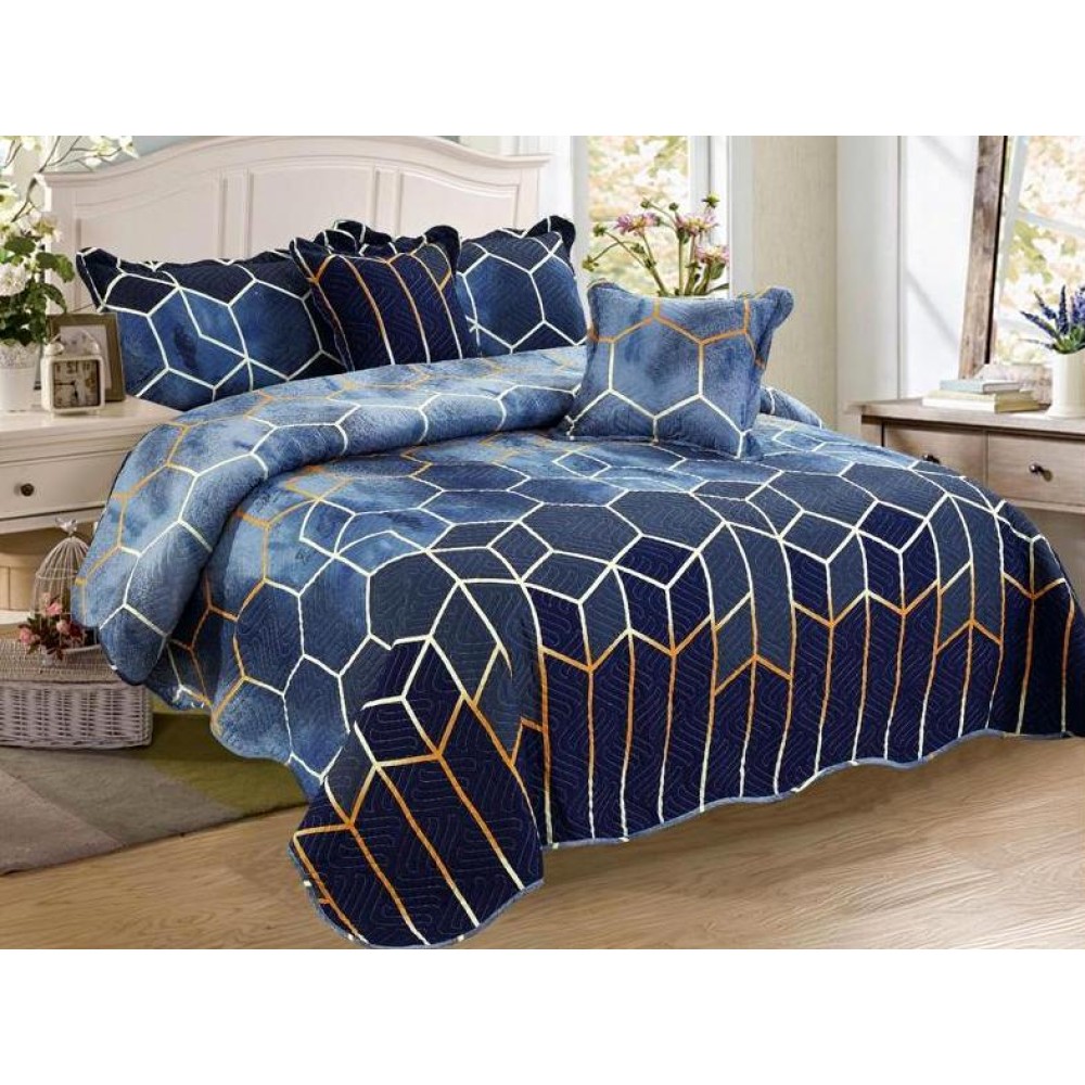 Cuvertura pat dublu din Bumbac Finet, 5 PIESE, Albastru, forme geometrice, Alti producatori, cod produs: CVY13