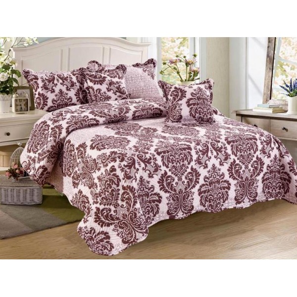 Cuvertura pat dublu din Bumbac Finet, 5 PIESE, Bej-Maro, model clasic [1]