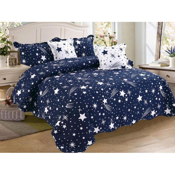 Cuvertura pat dublu din Bumbac Finet, 5 PIESE, Bleumarin, stelute, Alti producatori, cod produs: CVY17