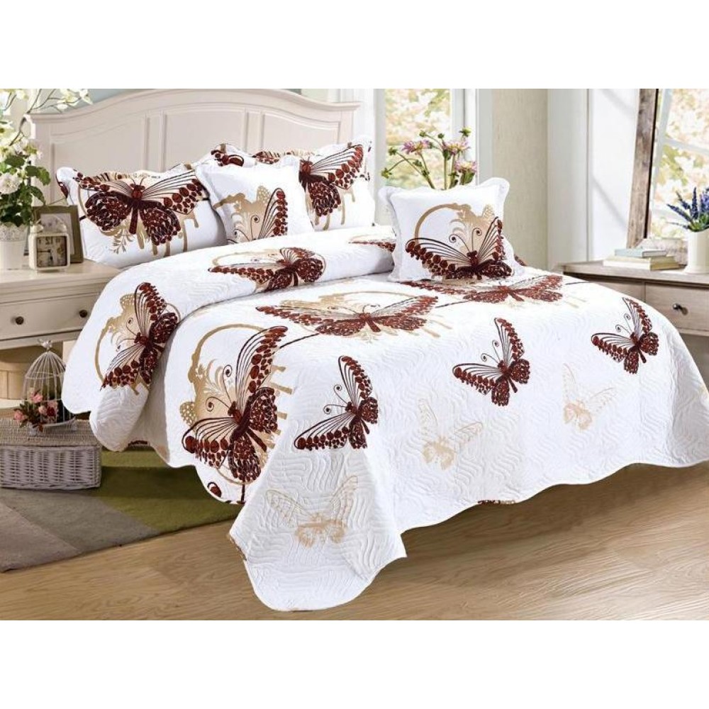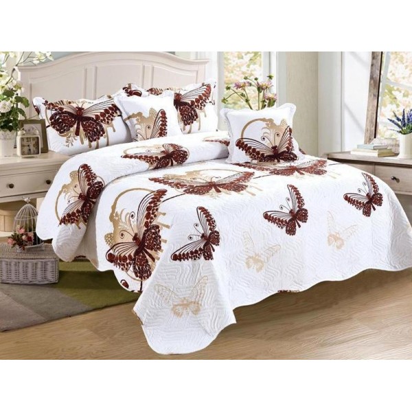 Cuvertura pat dublu din Bumbac Finet, 5 PIESE, Crem-Maro, fluturi, Alti producatori, cod produs: CVY5