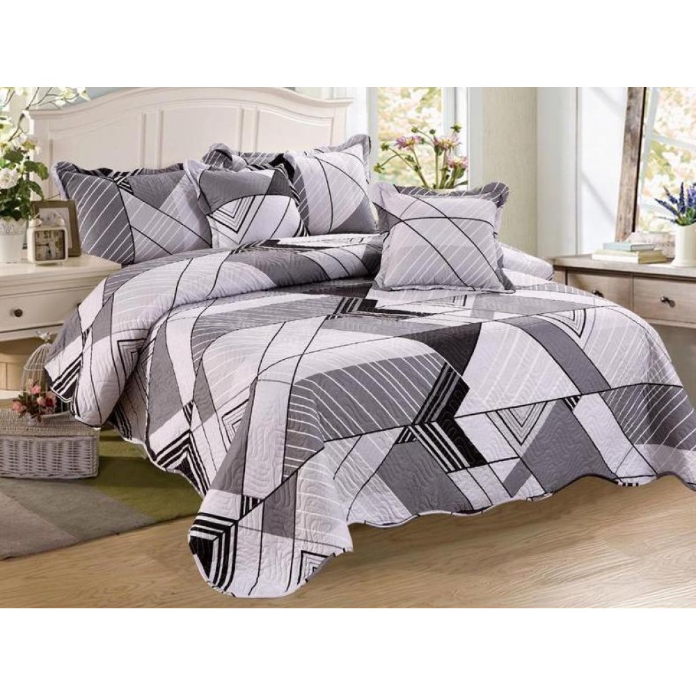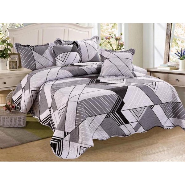 Cuvertura pat dublu din Bumbac Finet, 5 PIESE, Gri, linii, Alti producatori, cod produs: CVY11
