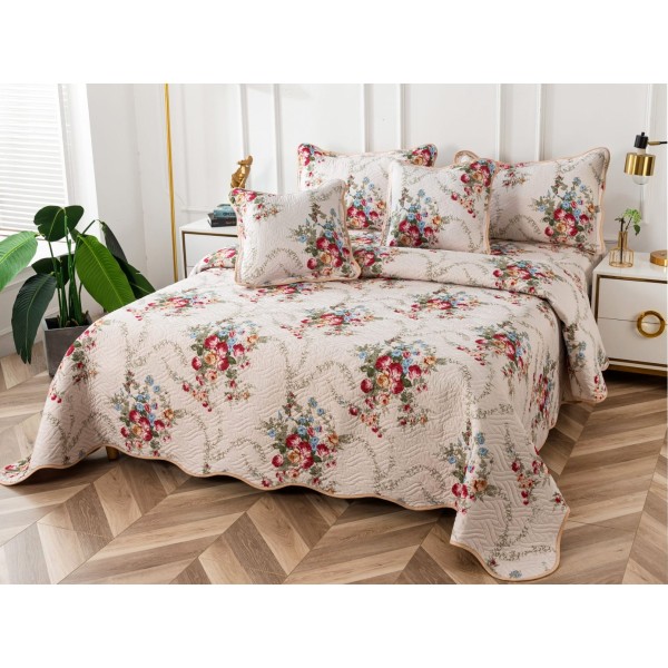Cuvertura pat dublu din Bumbac Finet, 5 PIESE, Gri-Rosu, flori, Alti producatori, cod produs: CVP341