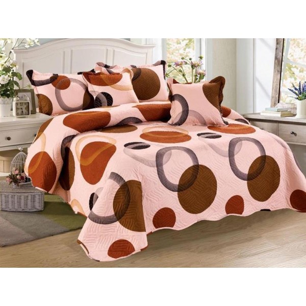 Cuvertura pat dublu din Bumbac Finet, 5 PIESE, Maro, cercuri, Alti producatori, cod produs: CVY12