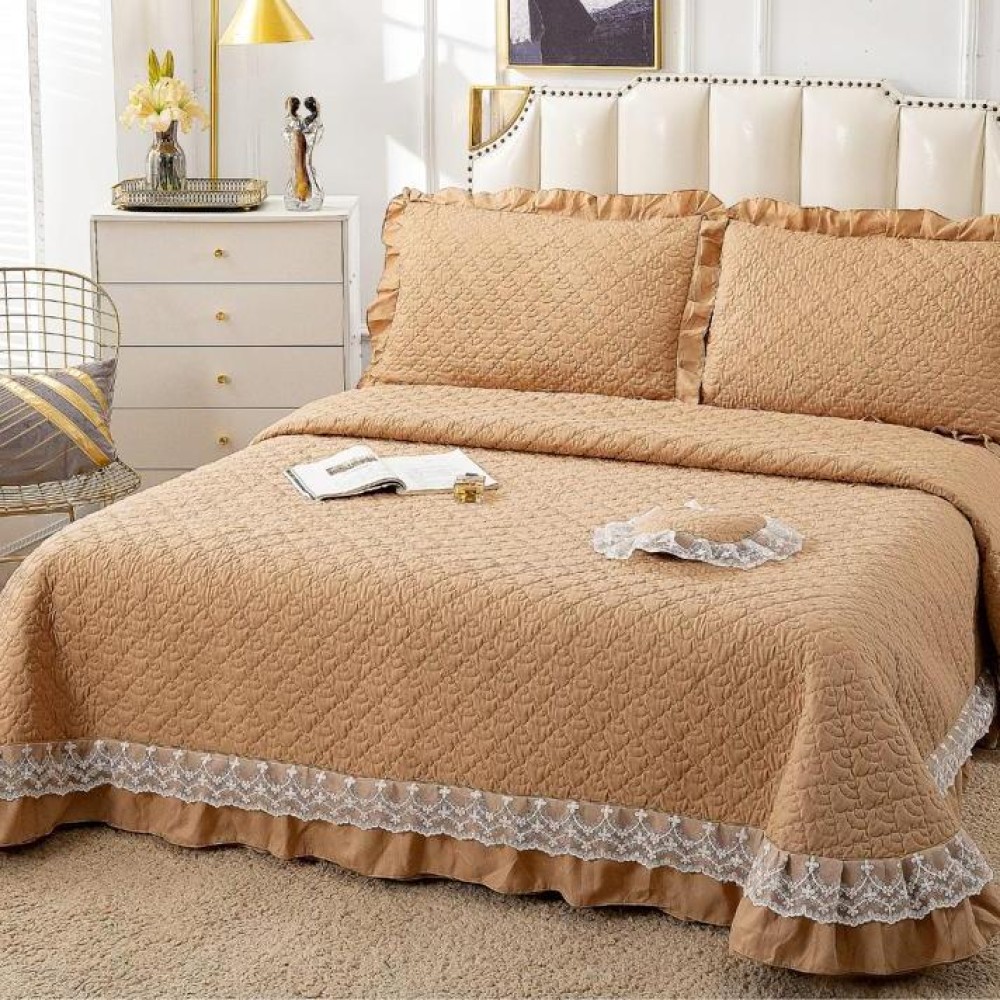 Cuvertura pat dublu din Bumbac Finet cu Broderie, 4 PIESE, Maro deschis, Alti producatori, cod produs: CVP707