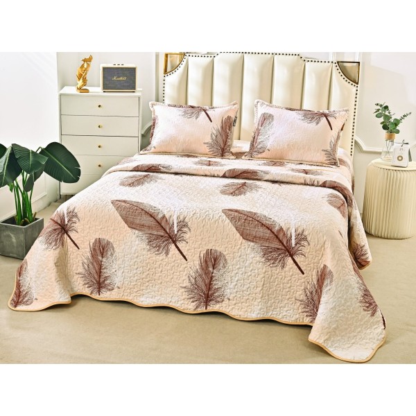 Cuvertura pat dublu din Bumbac Satinat Superior, 3 PIESE, Bej, pene [1]