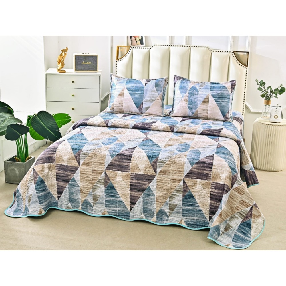 Cuvertura pat dublu din Bumbac Satinat Superior, 3 PIESE, Bleu-Bej, abstract, Alti producatori, cod produs: CVP175