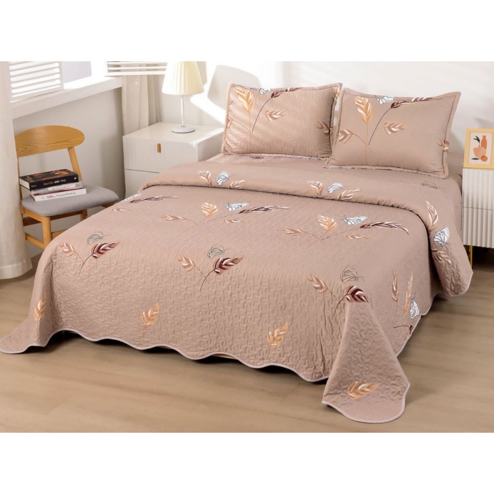 Cuvertura pat dublu din Bumbac Satinat Superior, 3 PIESE, Bej, pene, fluturi, Alti producatori, cod produs: CVP56