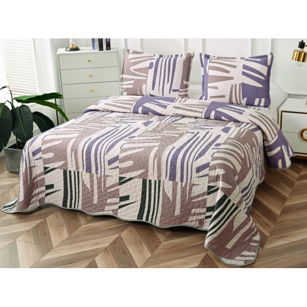 Cuvertura pat dublu din Bumbac Satinat Superior, 3 PIESE, Crem-Multicolor, model clasic, Alti producatori, cod produs: CVP103