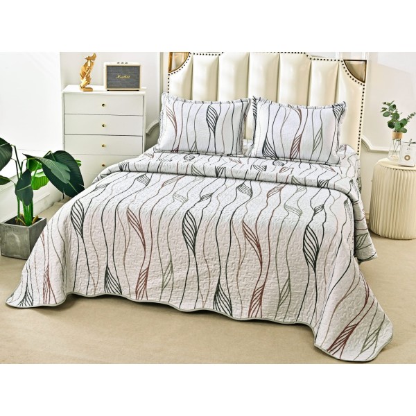 Cuvertura pat dublu din Bumbac Satinat Superior, 3 PIESE, Gri-Bej, abstract, Alti producatori, cod produs: CVP181