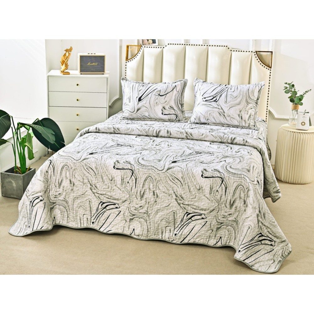 Cuvertura pat dublu din Bumbac Satinat Superior, 3 PIESE, Gri-Negru, abstract, Alti producatori, cod produs: CVP180