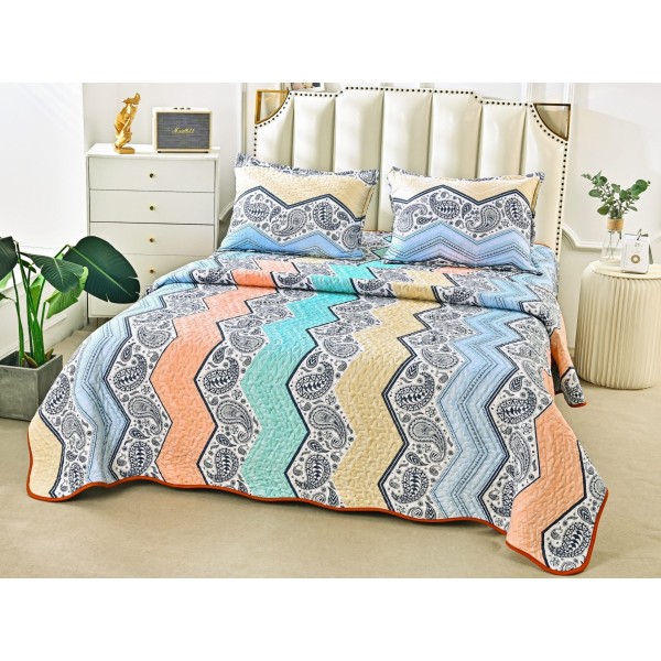 Cuvertura pat dublu din Bumbac Satinat Superior, 3 PIESE, Multicolor, Zig Zag, Alti producatori, cod produs: CVP154