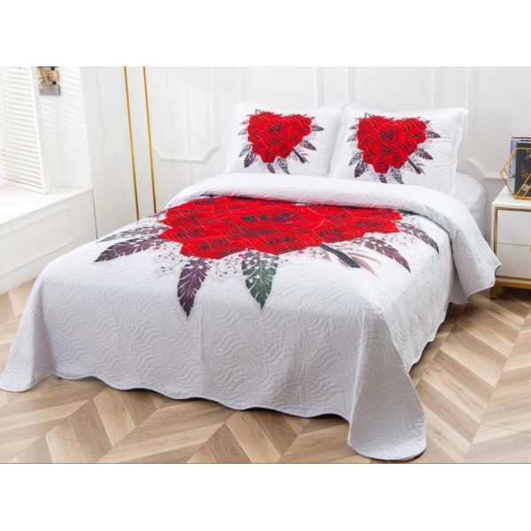 Cuvertura pat dublu, din bumbac tip finet, Identica cu Poza, 3 PIESE, Rosu, trandafiri, Alti producatori, cod produs: CVP209