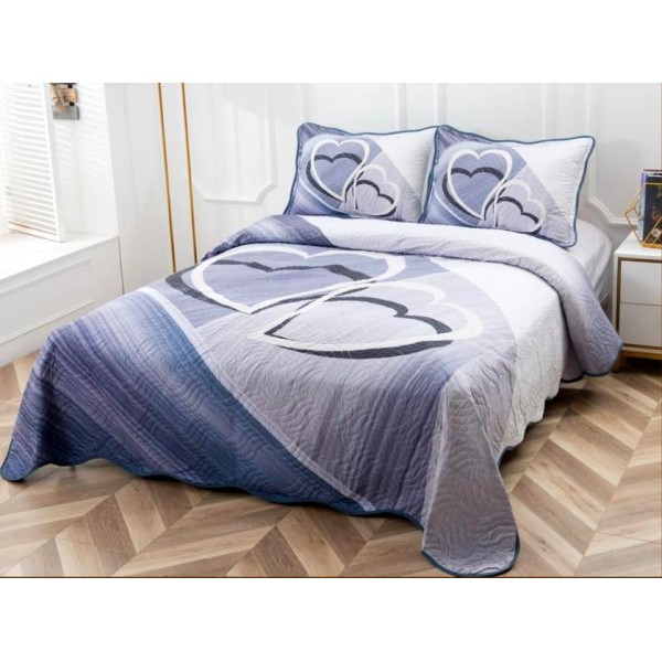 Cuvertura pat dublu, din bumbac tip finet, Identica cu Poza, 3 PIESE, Gri albastrui, inimioare, Alti producatori, cod produs: CVP213