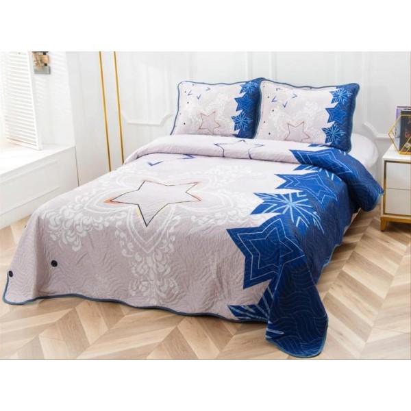 Cuvertura pat dublu, din bumbac tip finet, Identica cu Poza, 3 PIESE, Albastru, stelute, Alti producatori, cod produs: CVP216