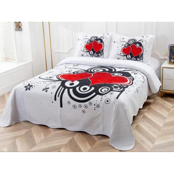 Cuvertura pat dublu, din bumbac tip finet, Identica cu Poza, 3 PIESE, Rosu, inimioare, Alti producatori, cod produs: CVP217