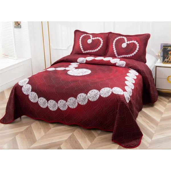 Cuvertura pat dublu, din bumbac tip finet, Identica cu Poza, 3 PIESE, Rosu, inimioare, Alti producatori, cod produs: CVP218