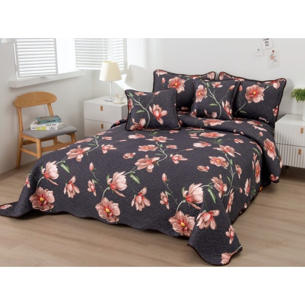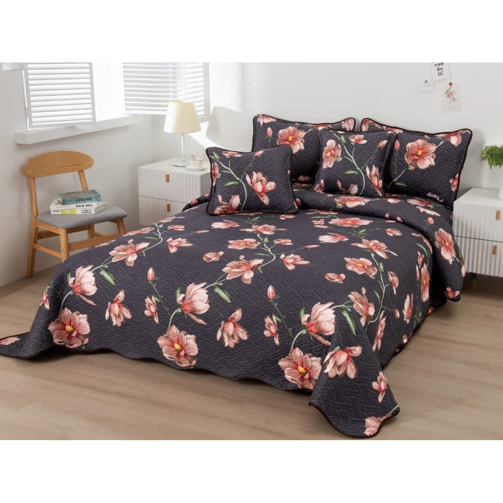 Cuvertura pat dublu din Bumbac Finet, 5 PIESE, Maro, flori, Alti producatori, cod produs: CVP301