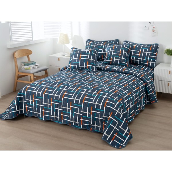 Cuvertura pat dublu din Bumbac Finet, 5 PIESE, Multicolor, dungi, Alti producatori, cod produs: CVP303