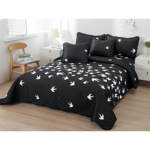 Cuvertura pat dublu din Bumbac Finet, 5 PIESE, Negru-Alb, randunele, Alti producatori, cod produs: CVP308