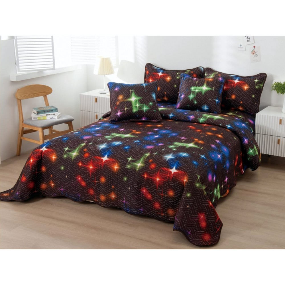 Cuvertura pat dublu din Bumbac Finet, 5 PIESE, Multicolor, stelute, Alti producatori, cod produs: CVP316