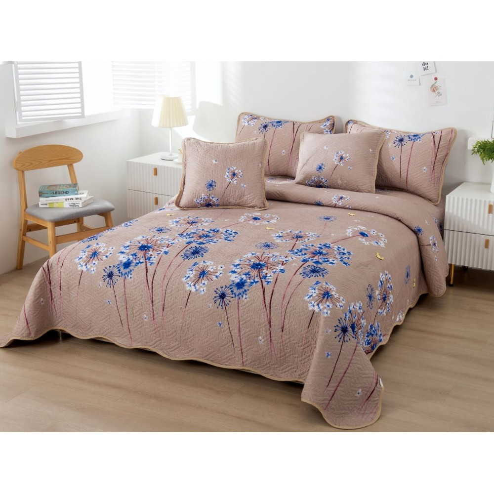 Cuvertura pat dublu din Bumbac Finet, 5 PIESE, Bej-Albastru, papadii, Alti producatori, cod produs: CVP317