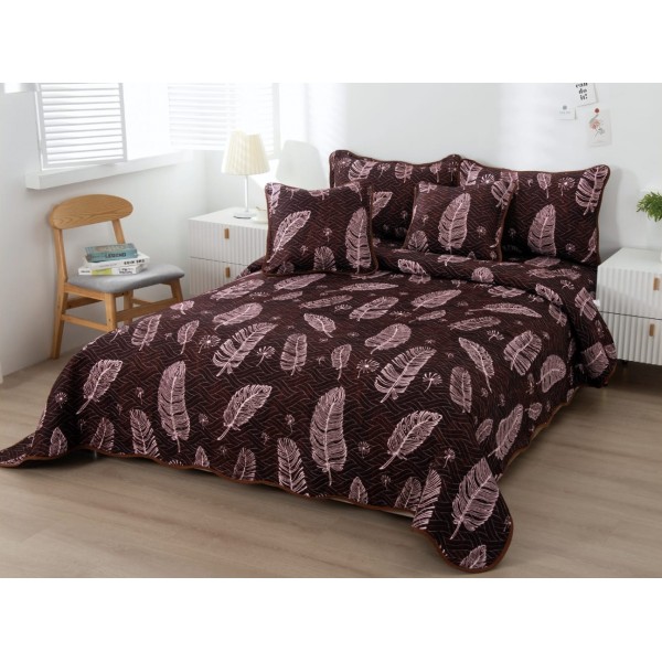 Cuvertura pat dublu din Bumbac Finet, 5 PIESE, Maro, pene, Alti producatori, cod produs: CVP321
