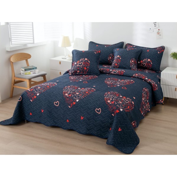 Cuvertura pat dublu din Bumbac Finet, 5 PIESE, Negru-Rosu, inimioare, Alti producatori, cod produs: CVP329