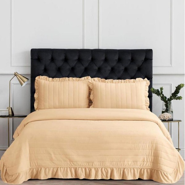 Cuvertura pat dublu, matlasata, 3 PIESE, Bumbac Satinat Superior, Bej, CumparaMisim, cod produs: SKK108
