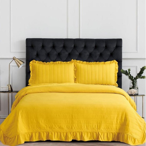 Cuvertura pat dublu, matlasata, 3 PIESE, Bumbac Satinat Superior, Galben, CumparaMisim, cod produs: SKK101