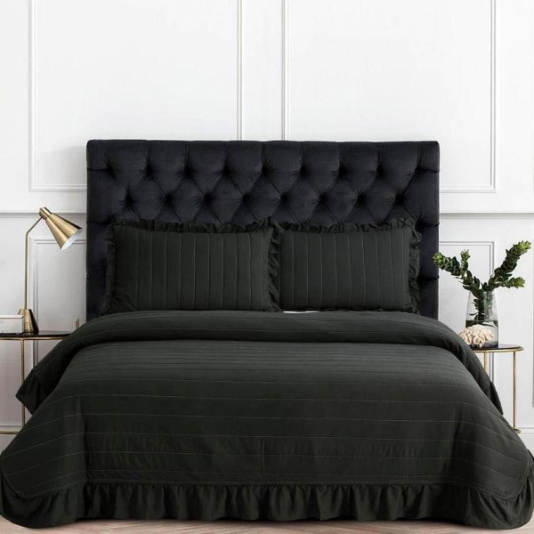 Cuvertura pat dublu, matlasata, 3 PIESE, Bumbac Satinat Superior, Negru, CumparaMisim, cod produs: SKK103