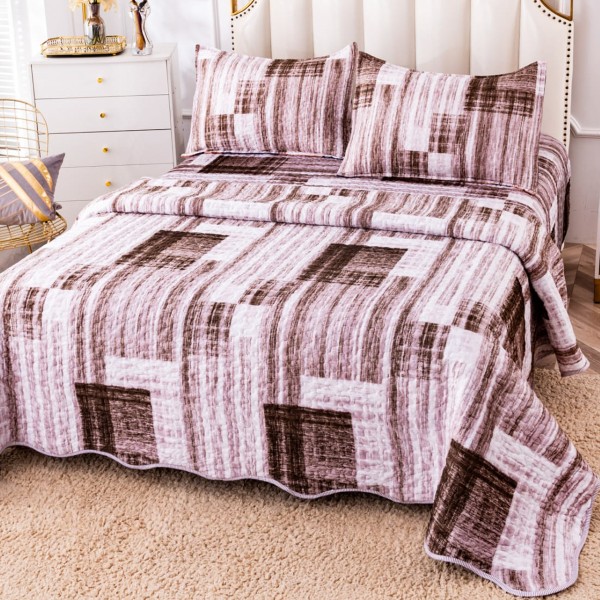 Cuvertura pat dublu, matlasata, din Catifea, 3 piese, 230x250cm, Gri, dungi, Alti producatori, cod produs: CVP613
