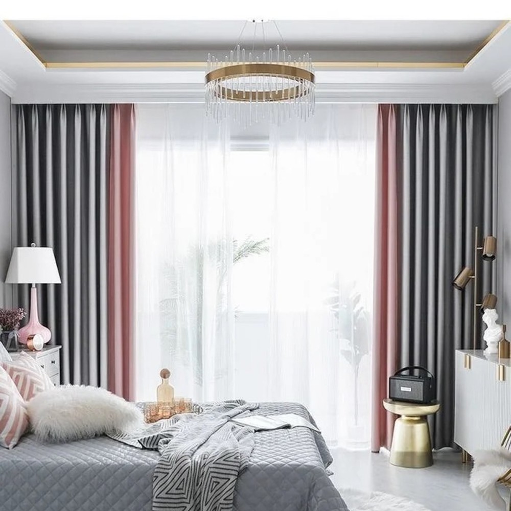 Set 2 draperii Blackout 80%, din Catifea, Bicolor, Gri deschis - Roz, 1m latime x 2.3m inaltime, cu rejansa pt sina, CumparaMisim, cod produs: DRP257b