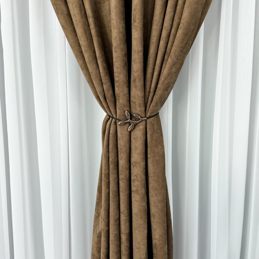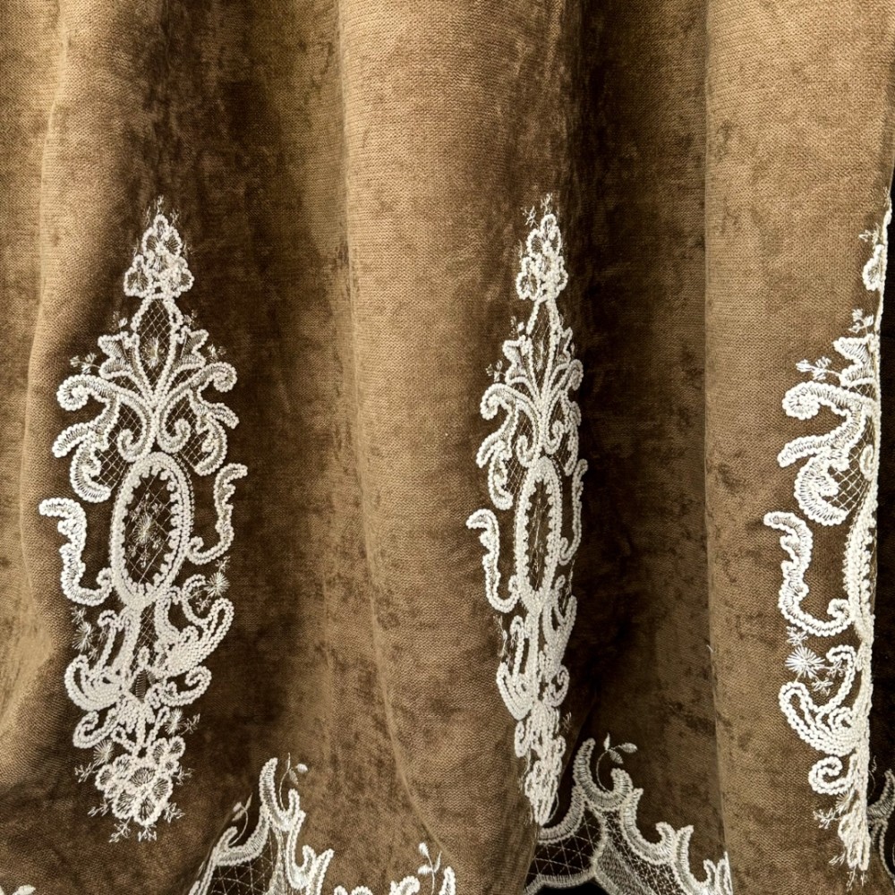 Draperie Blackout 80%, din Catifea cu Broderie, 140cm latime x 260cm înălțime, cu TIV LAT, Elite V3, Maro, CumparaMisim, cod produs: BNM-DR273