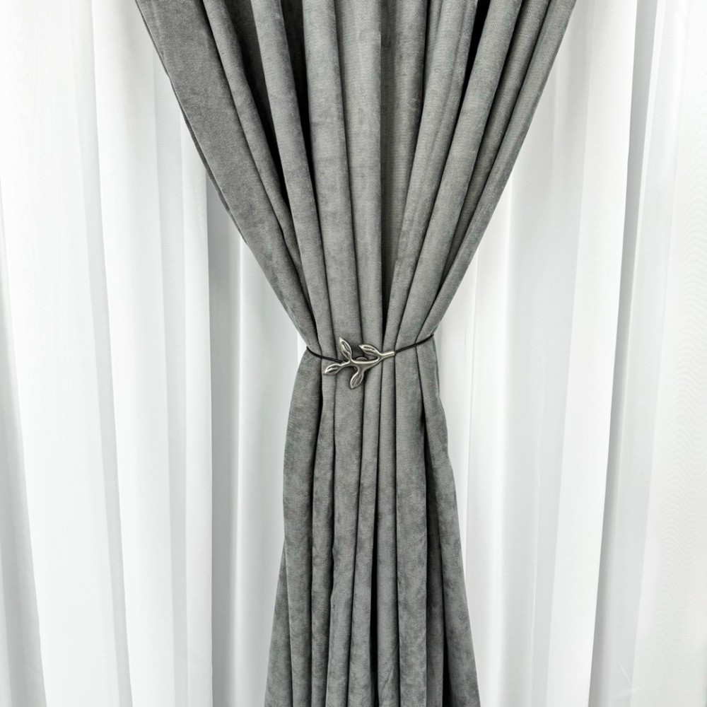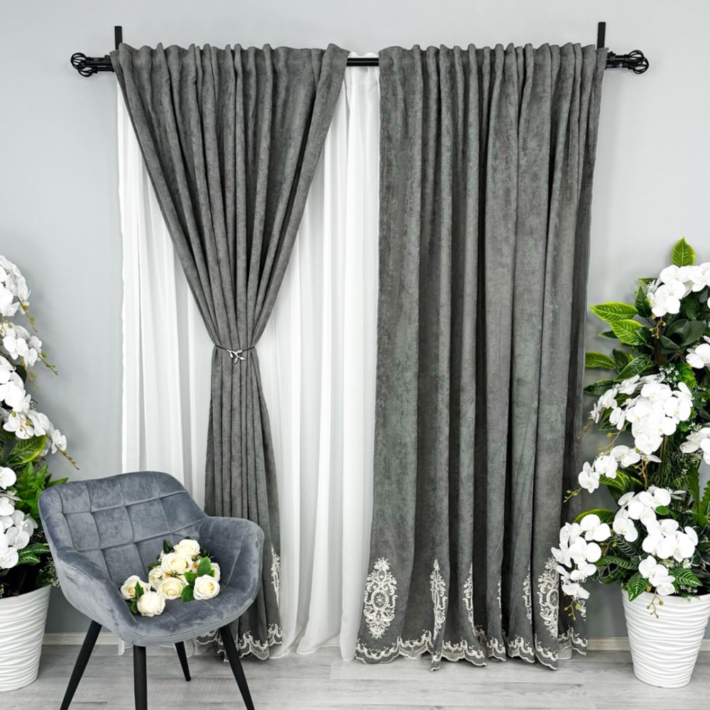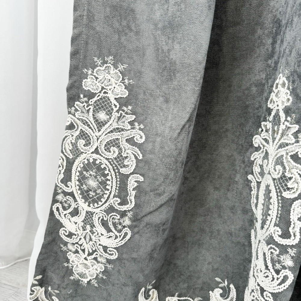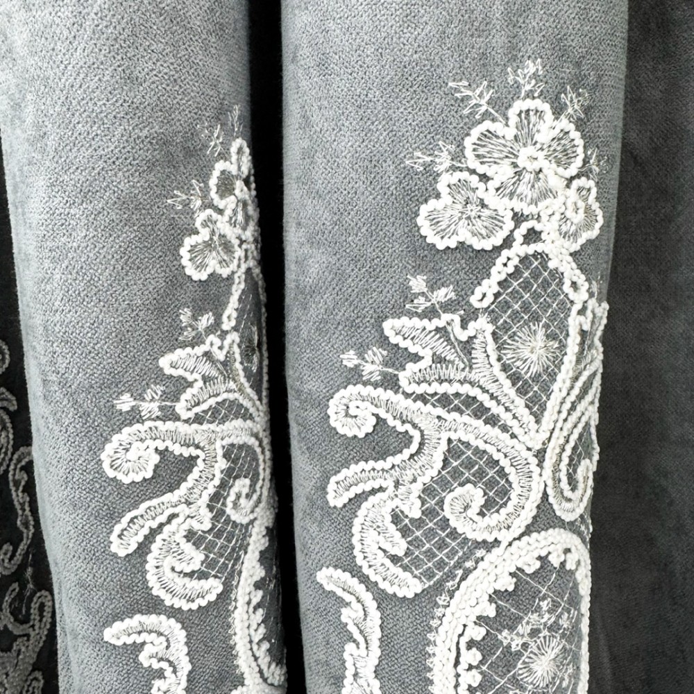 Draperie Blackout 80%, din Catifea cu Broderie, 140cm latime x 260cm înălțime, cu TIV LAT, Elite V3, Gri, CumparaMisim, cod produs: BNM-DR272