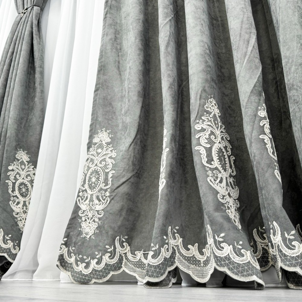 Transformă-ți casa într-un spațiu elegant cu draperia din catifea cu broderie!