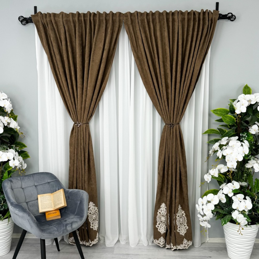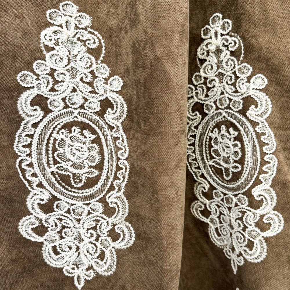 Draperie Blackout 80%, din Catifea cu Broderie, 140cm latime x 260cm înălțime, cu TIV LAT, Elite V1, Maro, CumparaMisim, cod produs: BNM-DR252