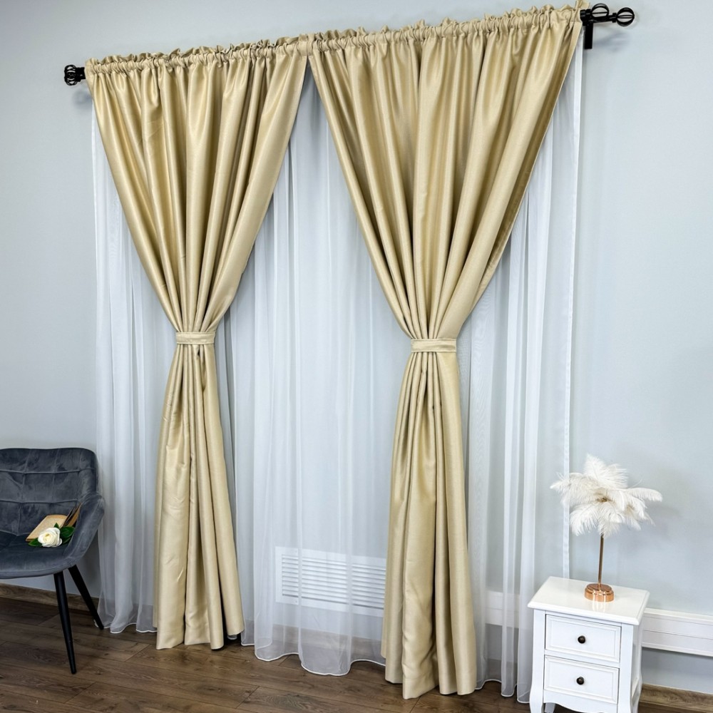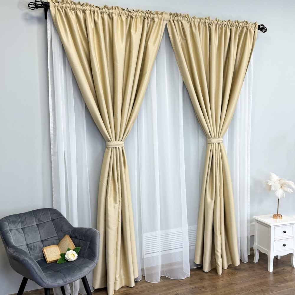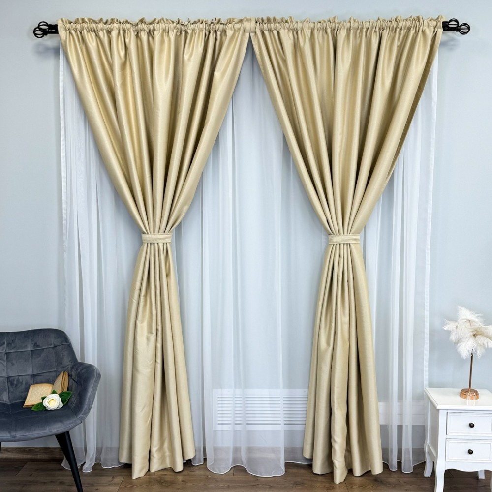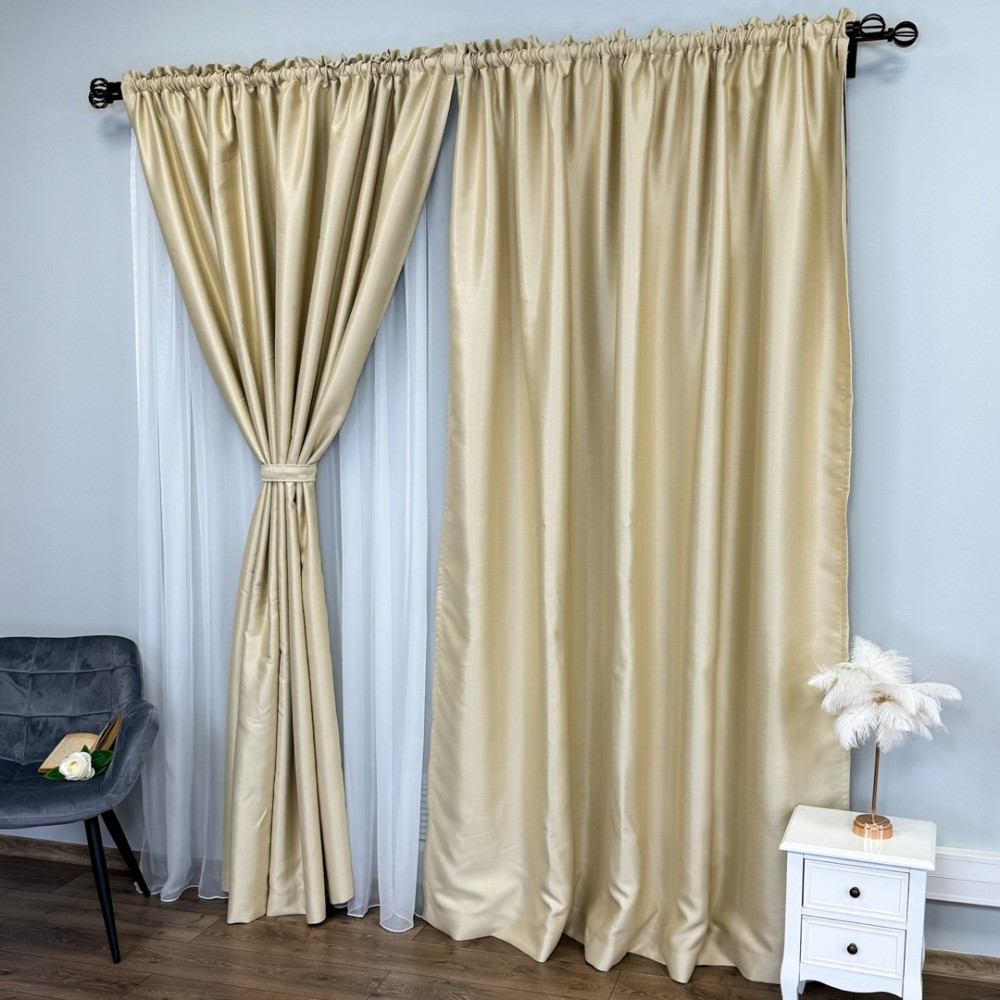 Draperie Blackout CLASS Satinata cu fir fin de sclipici, 140cm latime x 260cm înălțime, cu TIV LAT, Bej deschis - CR02, CumparaMisim, cod produs: CRT-DR100