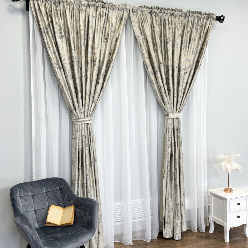Alege draperia Asama din catifea cu inserții metalizate pentru a transforma orice spațiu într-un cadru elegant, modern și plin de strălucire!