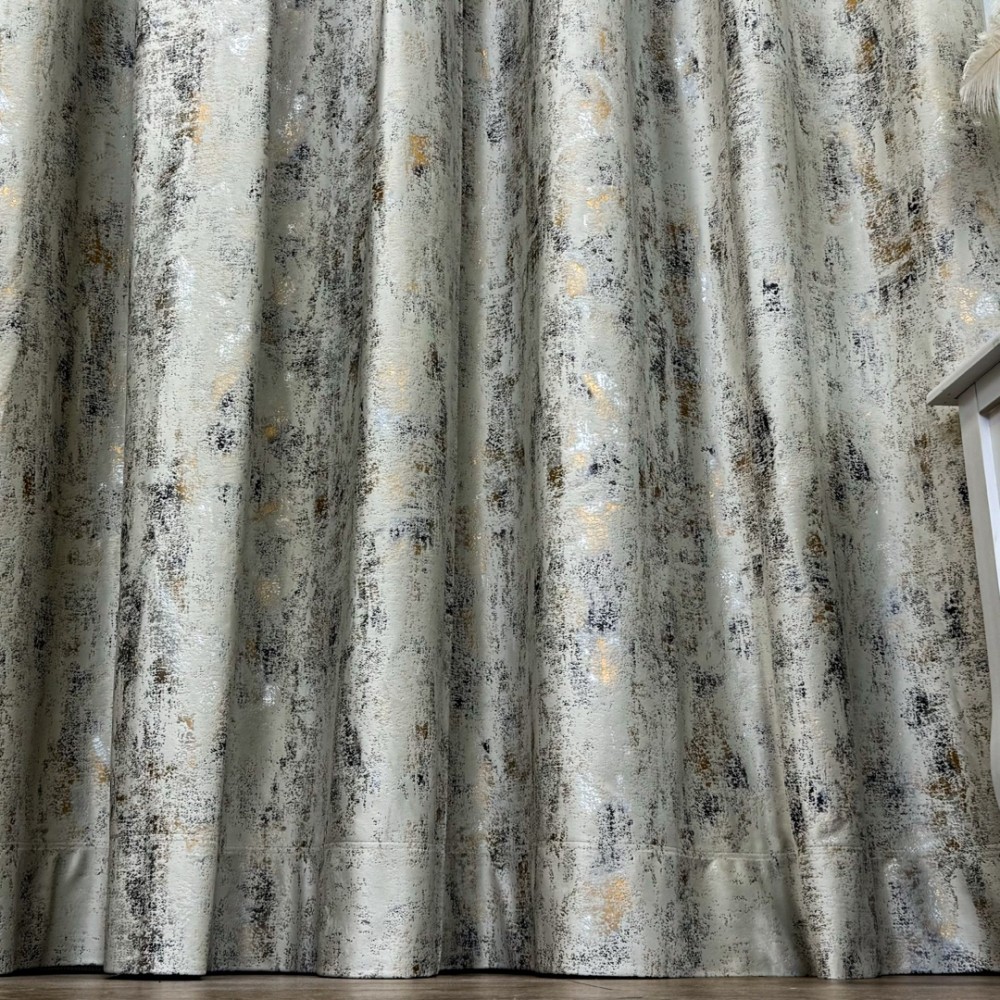 Draperia Asama din catifea cu inserții metalizate aurii și argintii este o alegere sofisticată pentru cei care doresc să adauge un plus de rafinament și exclusivitate decorului interior. Contrastul dintre textura moale a catifelei și strălucirea subtilă a inserțiilor metalizate creează un efect vizual spectaculos, transformând orice încăpere într-un spațiu elegant și sofisticat.