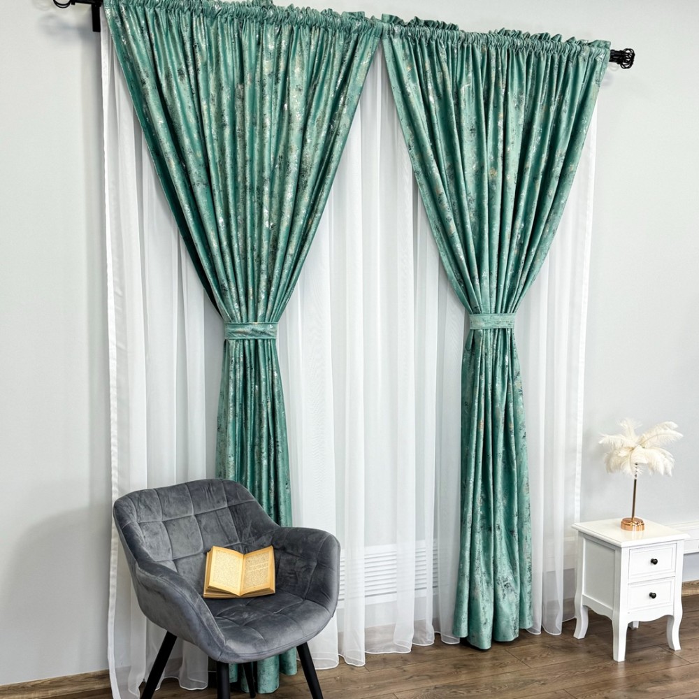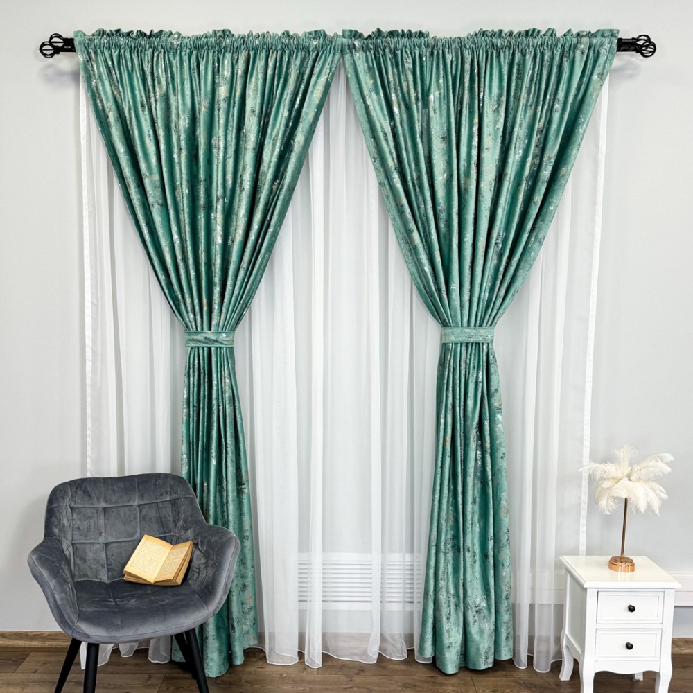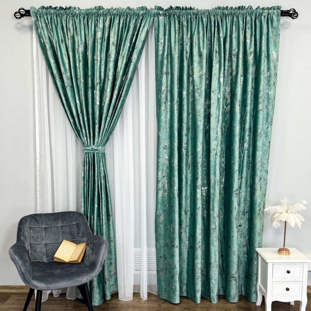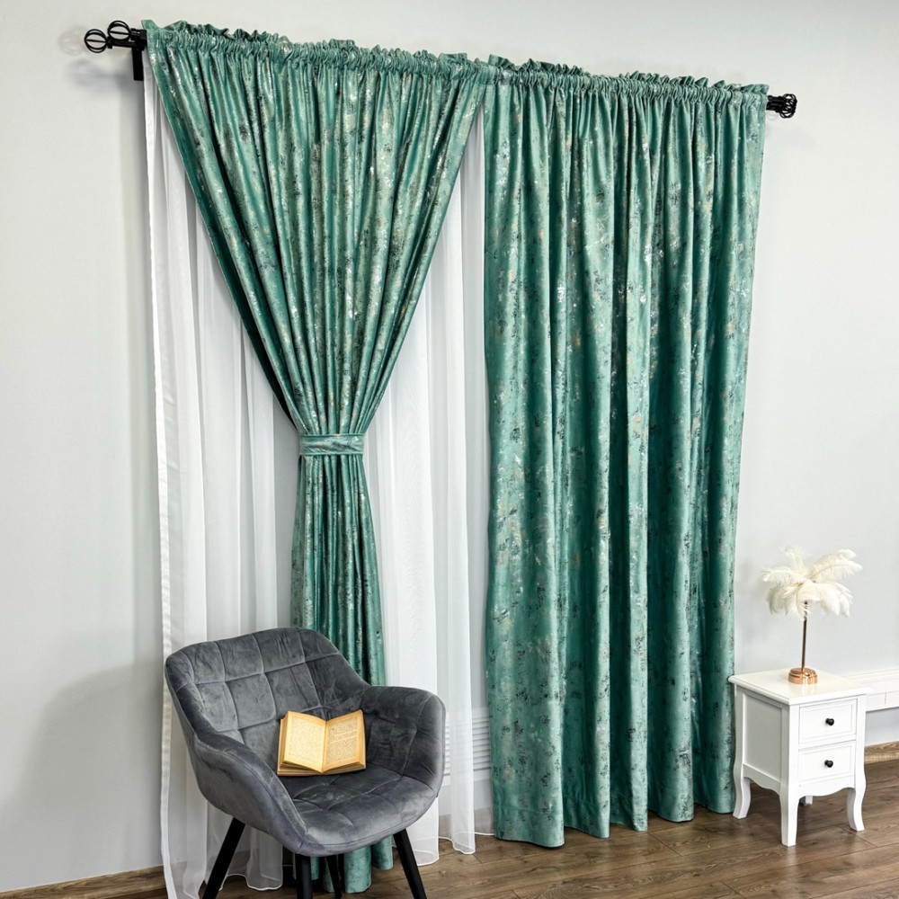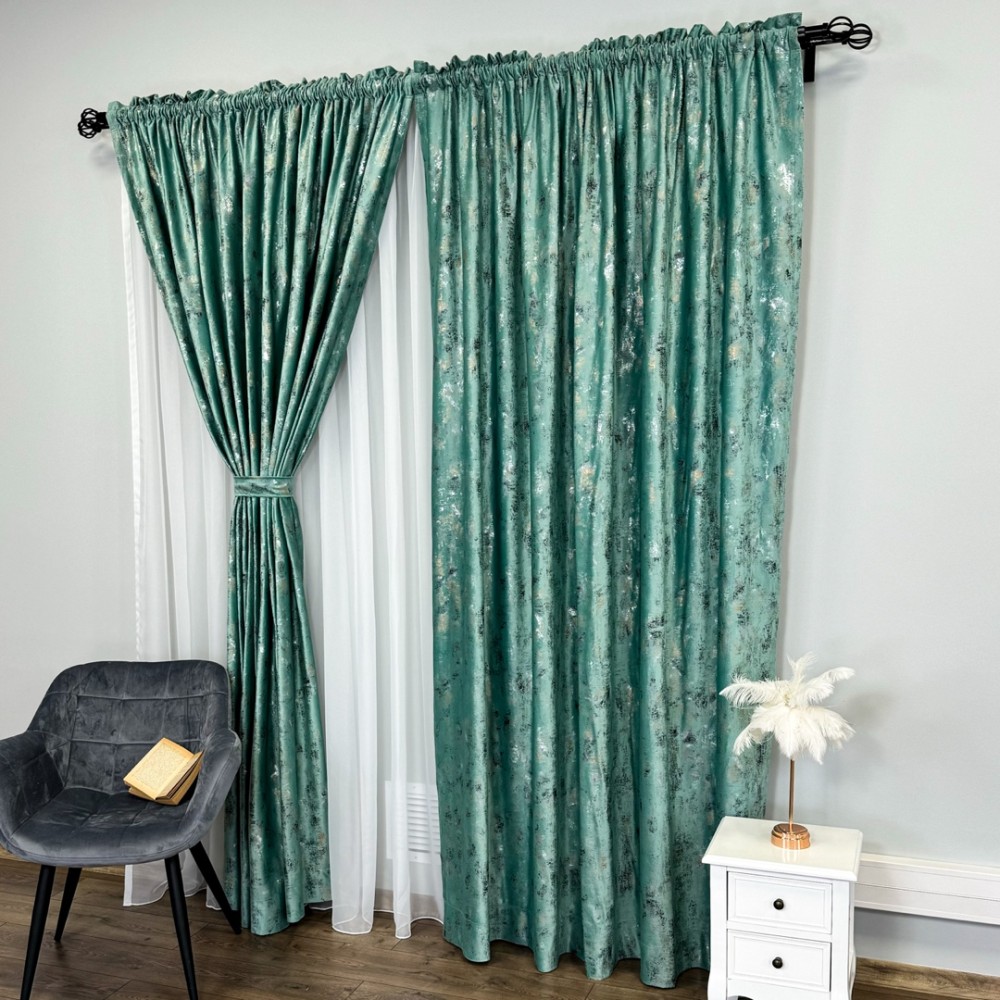 Draperie Catifea Asama cu insertii aurii, 140cm latime x 260cm înălțime, cu TIV LAT, Menta - V21, CumparaMisim, cod produs: CRT-DR26