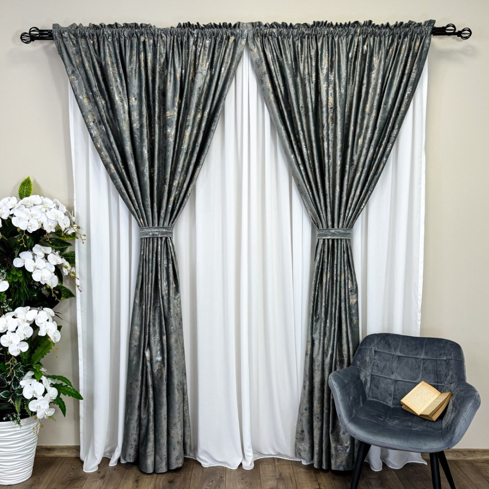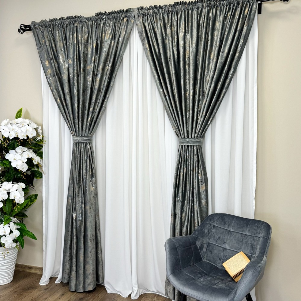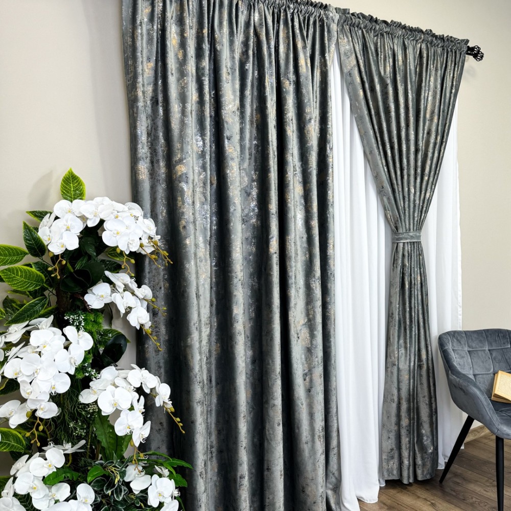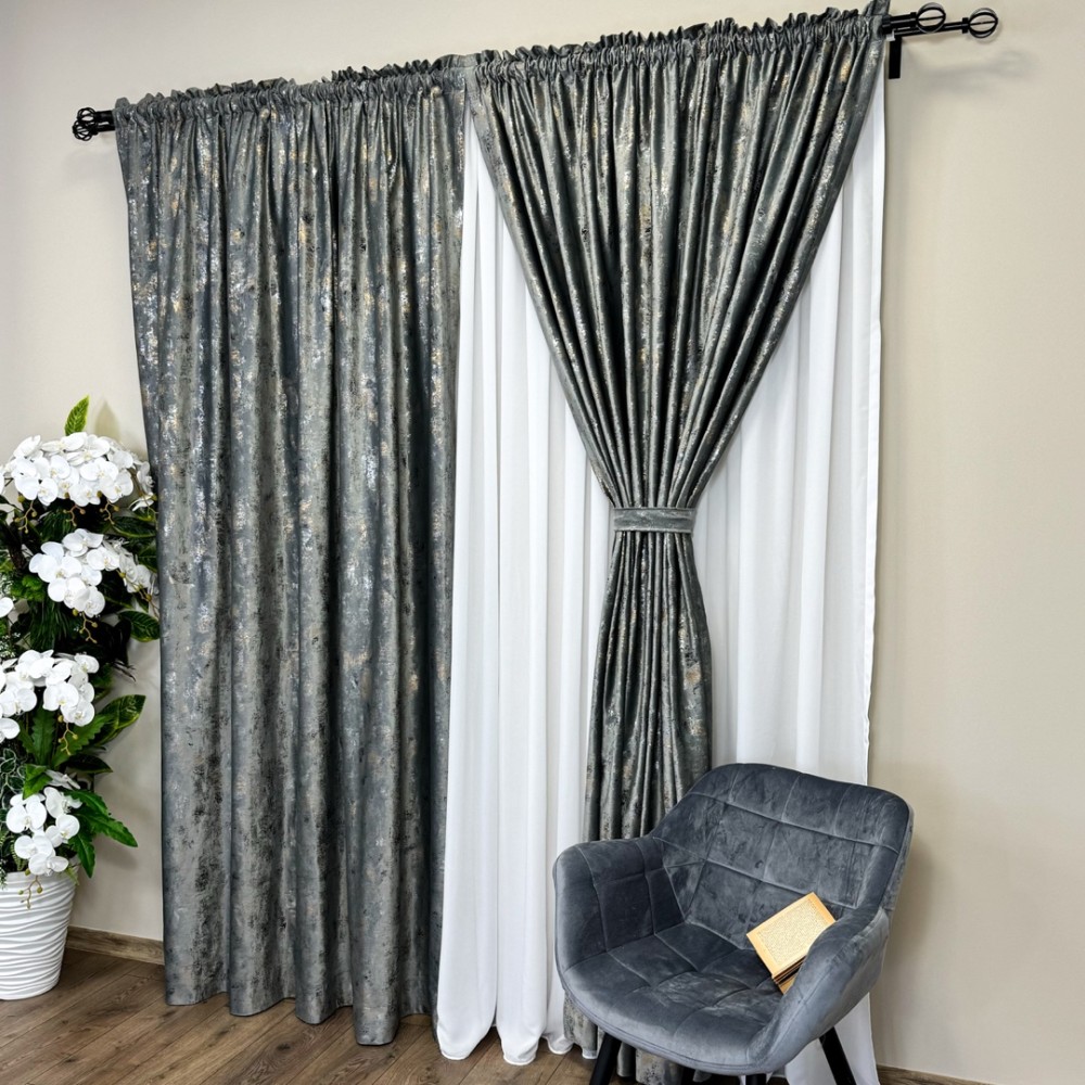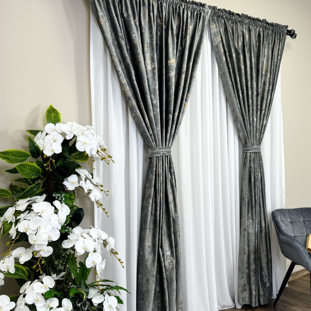 Aceste draperii nu sunt doar un element de decor, ci și o declarație a bunului gust și a stilului sofisticat al proprietarului. Cu o astfel de alegere, încăperea devine cu adevărat remarcabilă, transformând orice spațiu într-un sanctuar al luxului și al eleganței.