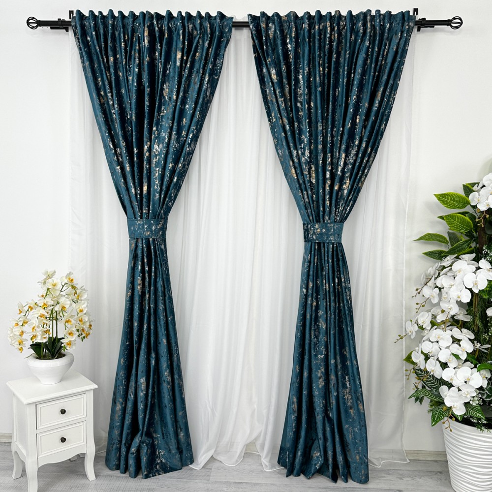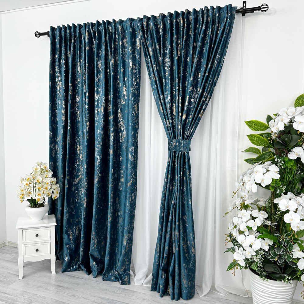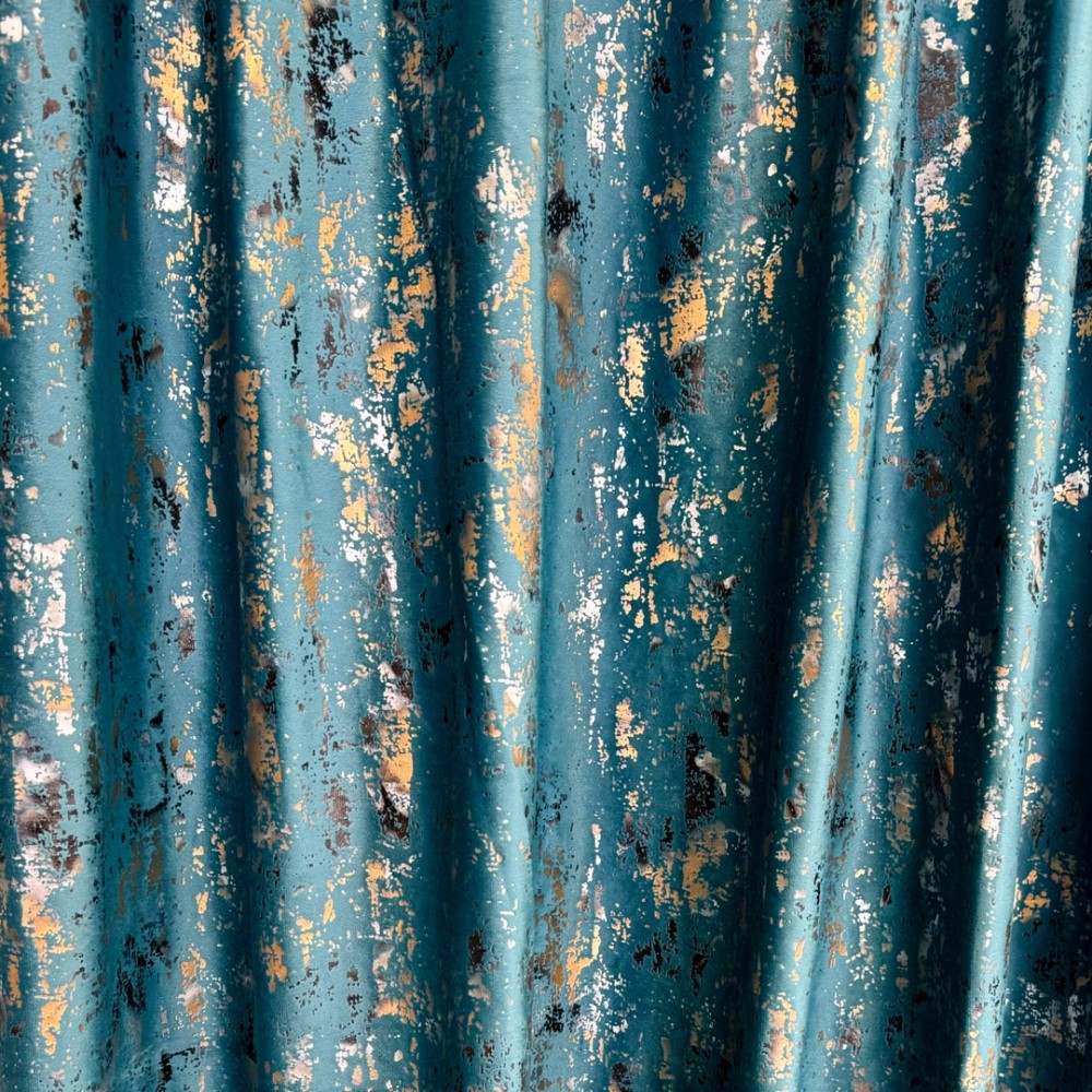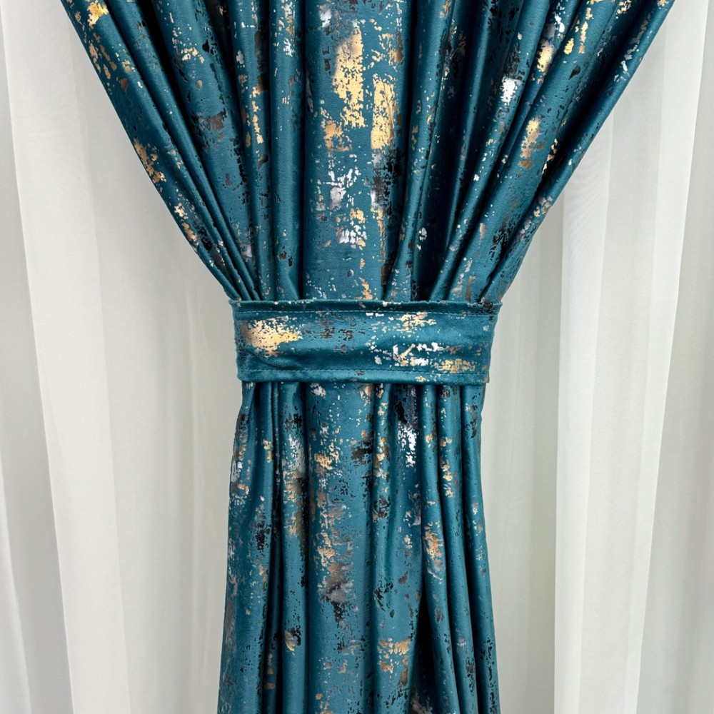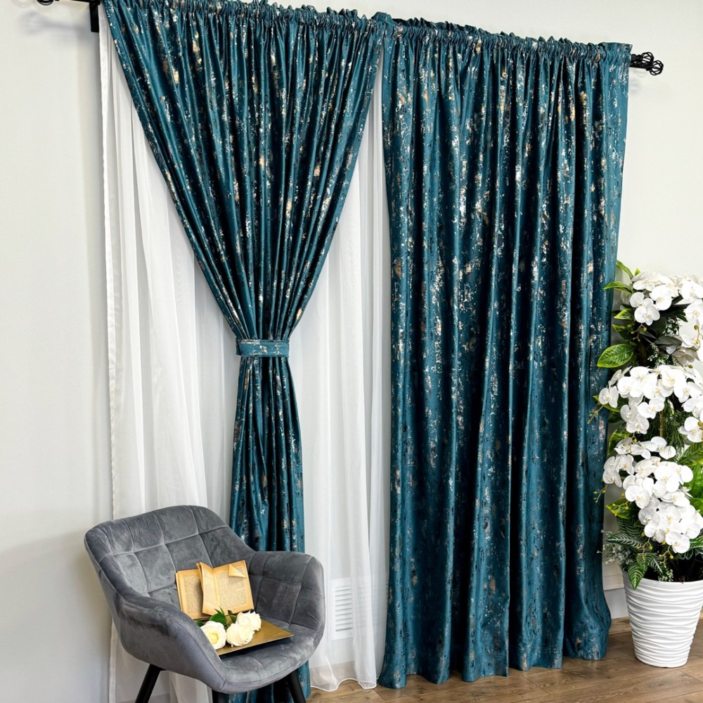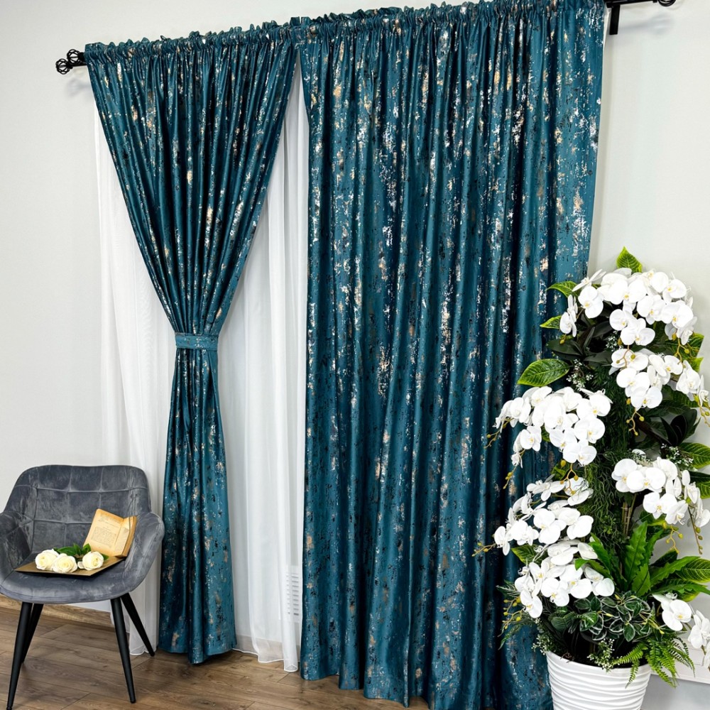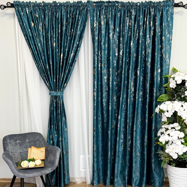 Draperie Catifea CRETA cu insertii aurii, 140cm latime x 260cm înălțime, cu TIV LAT, Turquoise - V6, CumparaMisim, cod produs: BNM-DR23