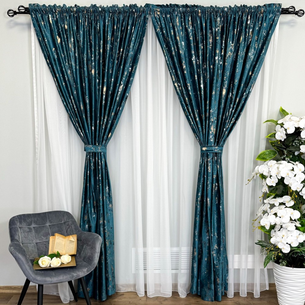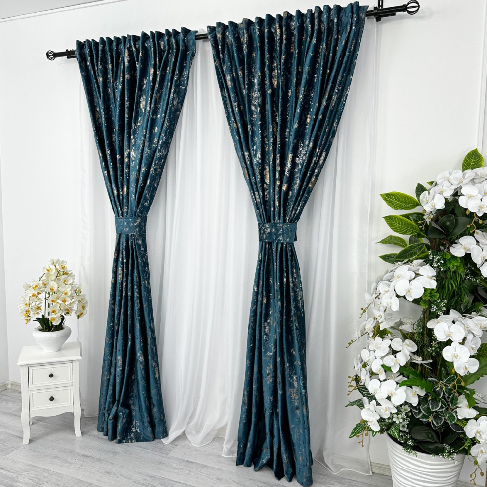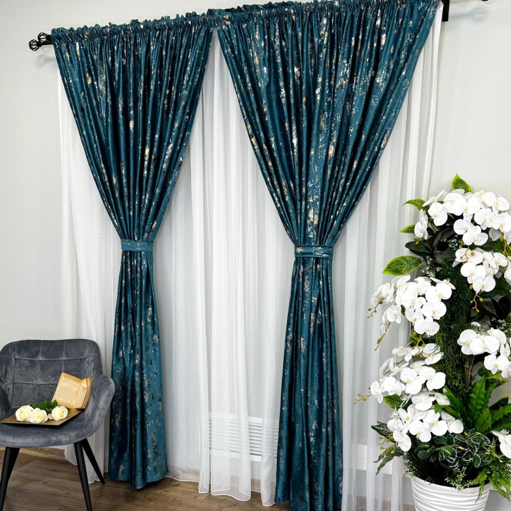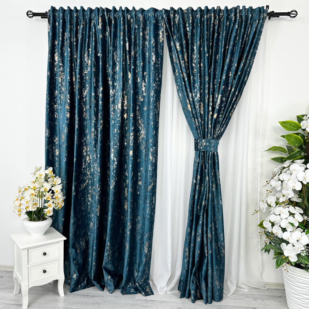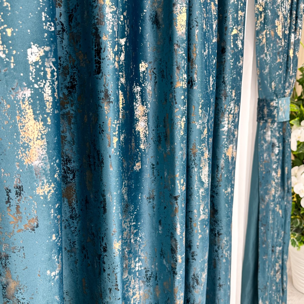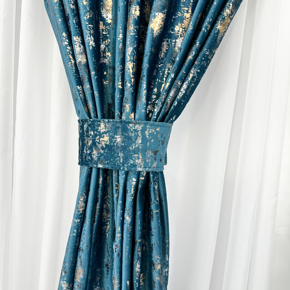 Draperie Catifea CRETA cu insertii aurii, 140cm latime x 260cm înălțime, cu TIV LAT, Turquoise - V6, CumparaMisim, cod produs: BNM-DR23