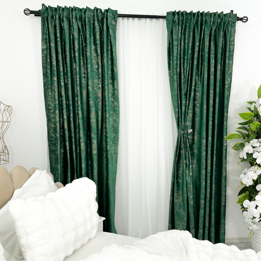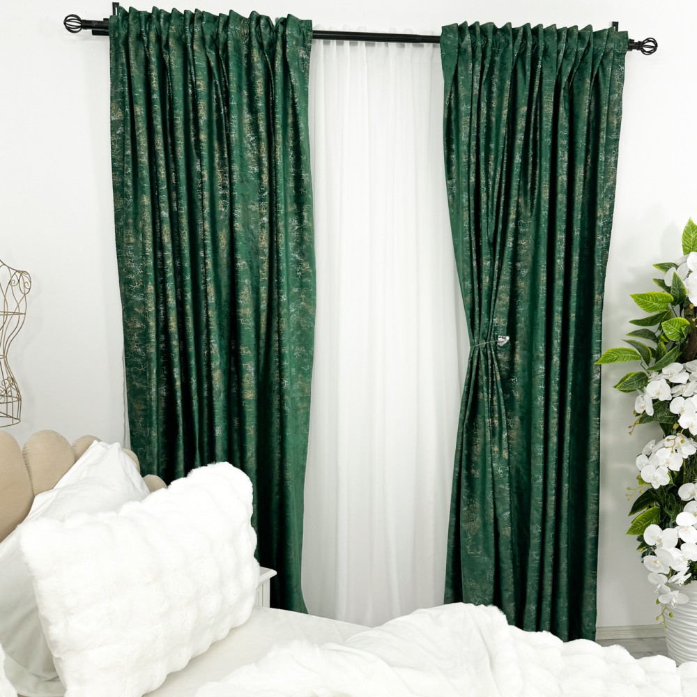 Draperie Catifea cu insertii metalizate, Verde Smarald, 1.4m latime x 2.4m inaltime, cu rejansa pentru bara, CumparaMisim, cod produs: CSR-DRs3a
