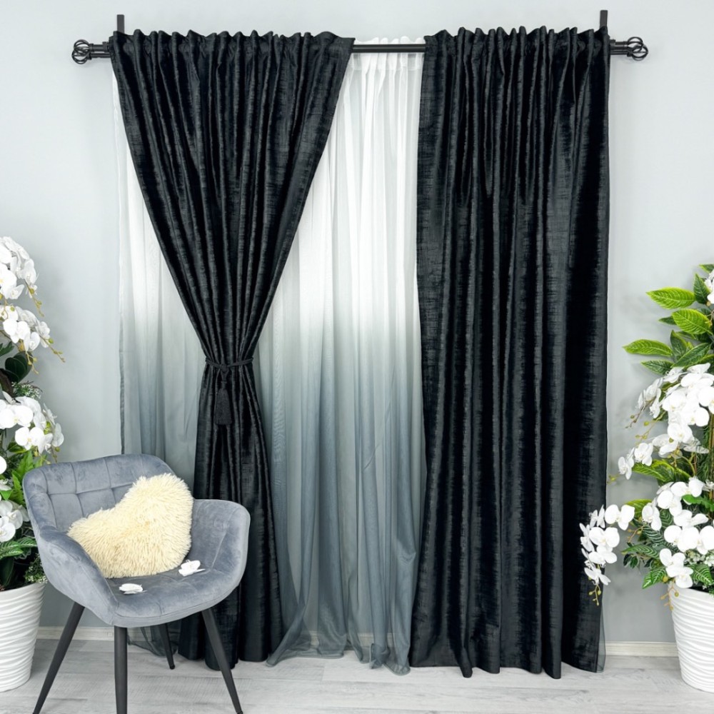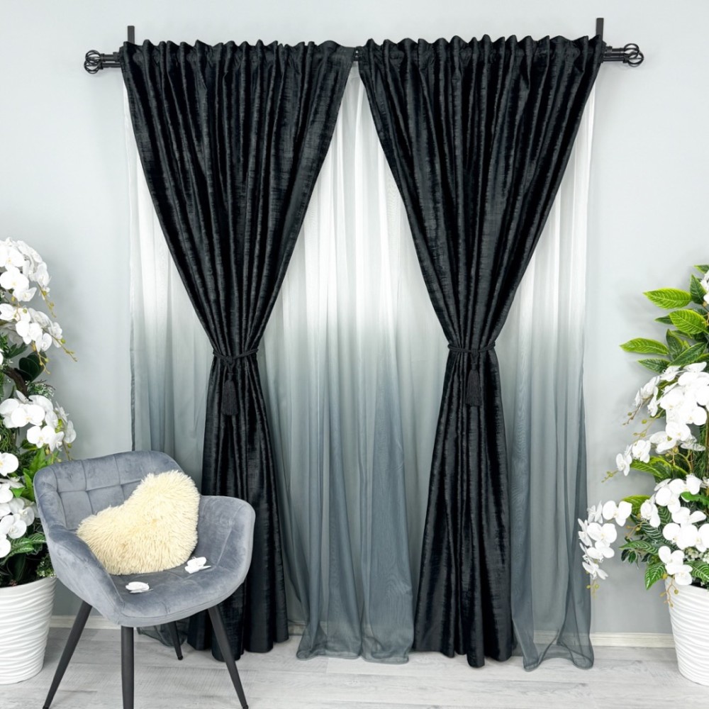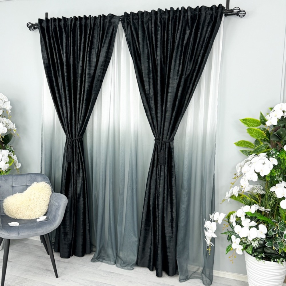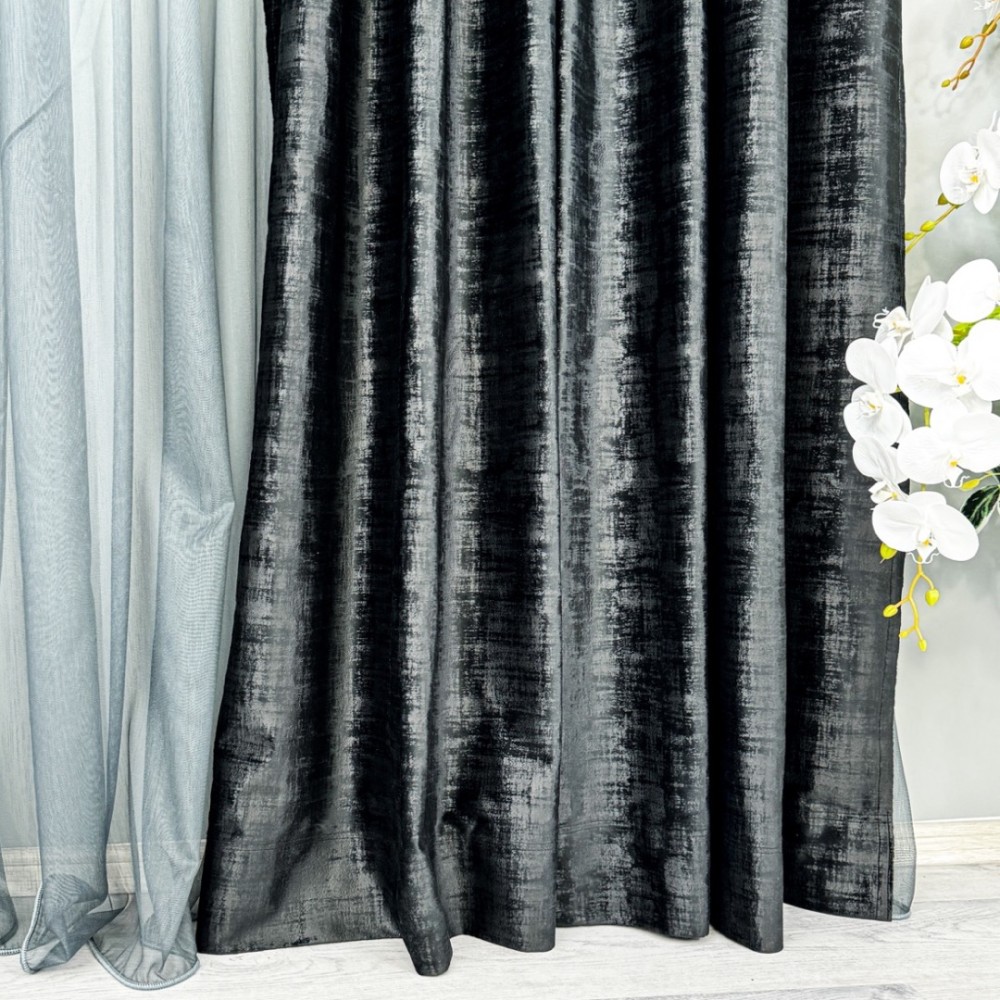 Draperie Catifea cu model Venti, Negru, 300x270cm, cu tiv lat, CumparaMisim, cod produs: BDRs154A