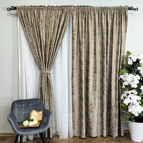 Draperie Catifea MYKONOS cu valuri rafinate aurii, 140cm latime x 260cm înălțime, cu TIV LAT, Cappuccino - New V6, CumparaMisim, cod produs: BNM-DR57