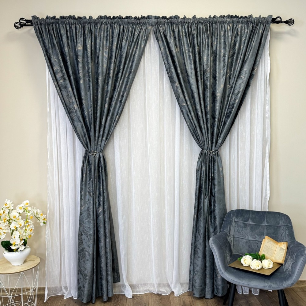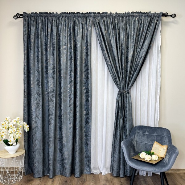 Draperie Catifea MYKONOS cu valuri rafinate aurii, 140cm latime x 260cm înălțime, cu TIV LAT, Gri inchis - V11, CumparaMisim, cod produs: BNM-DR62